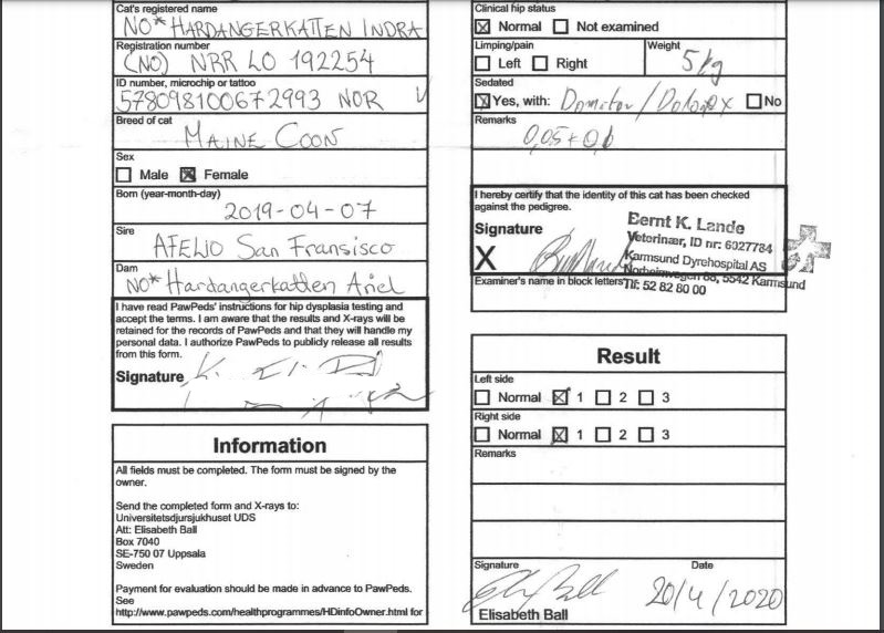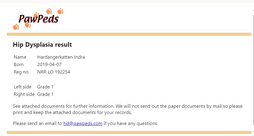 I dag har vi fått svaret på avlesinga av bildene av Indras hofter fra PawPeds, og jeg fikk rett i mine antakelser. Jeg var dog overlykkelig over at det ikke ble verre enn det ble!
