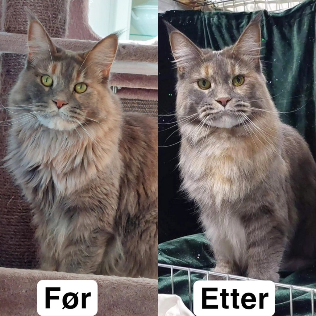 Før katten skal til pers er det lurt å ta en runde med pelsstell og få ut eventuelle floker før man tyr til avfetting.