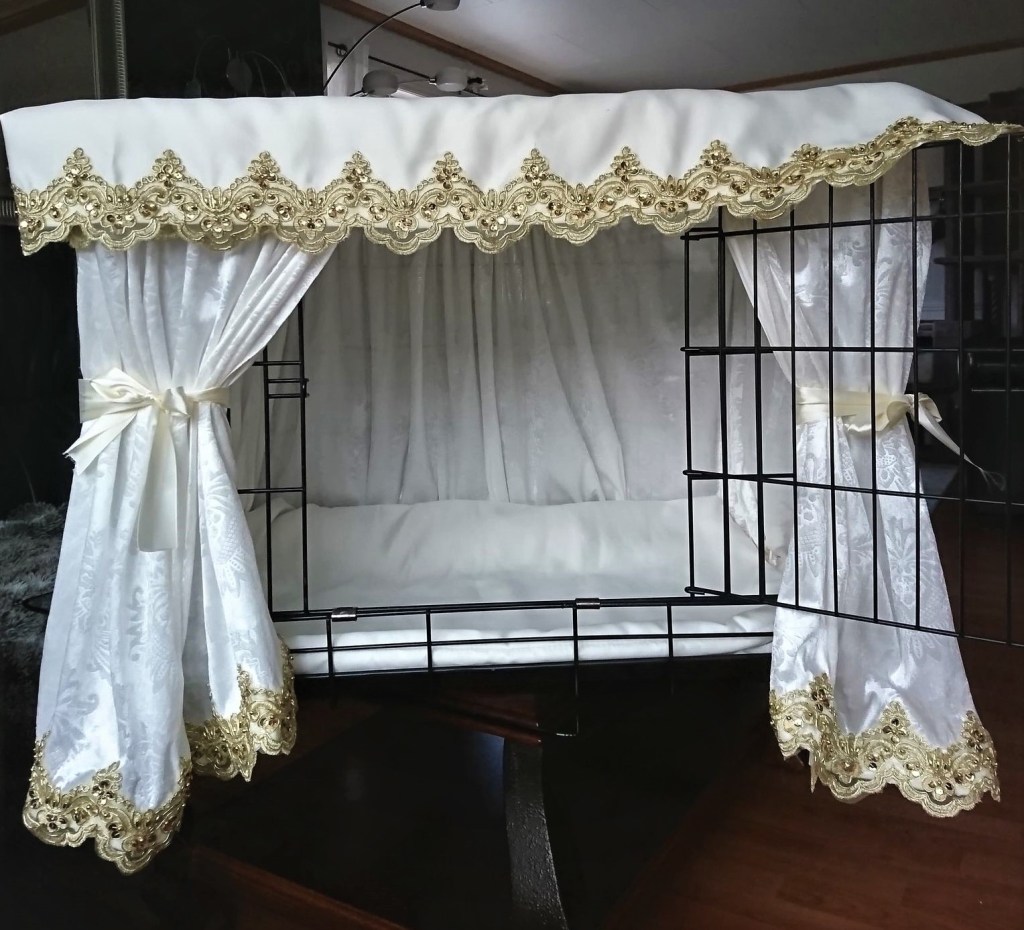 Man skal ha et toppdekke, gardiner innvendig og en bunn – til bunnen kan man fint bruke kattens favoritteppe om man ikke ønsker å styre med å lage til noe selv.