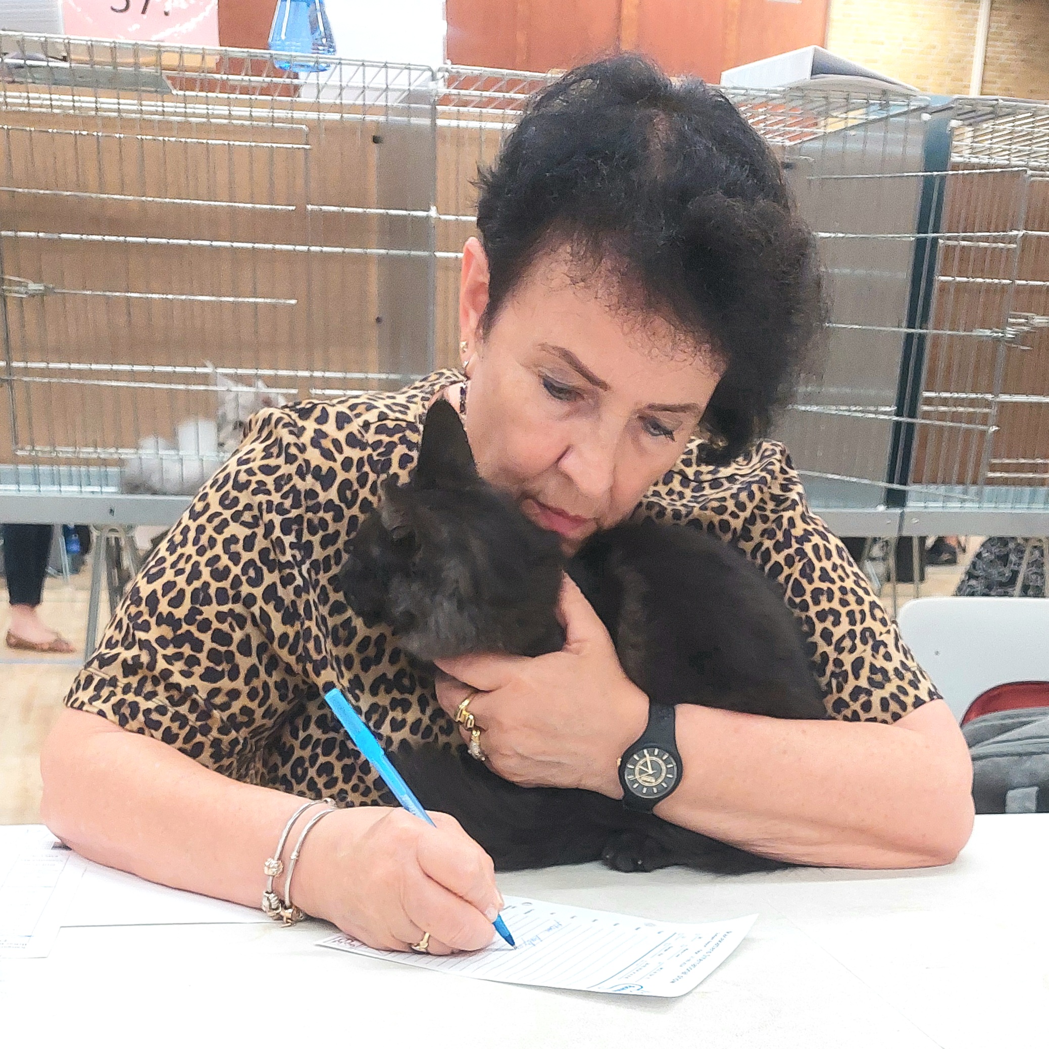 Dette var Zipporahs utstillingdebut, noe hun taklet helt utmerket bra. Hun var lugn i buret og malte da hun stod på stelletoppen på vogna og venta på sin tur opp til dommeren.