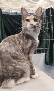 Da var yngste Aarrakatten gammel nok til å konkurrere i voksenklasse på utstilling. Lite visste matmor at Zipporah skulle slippe all pels før utstillingen, så hun stilte relativt «naken».