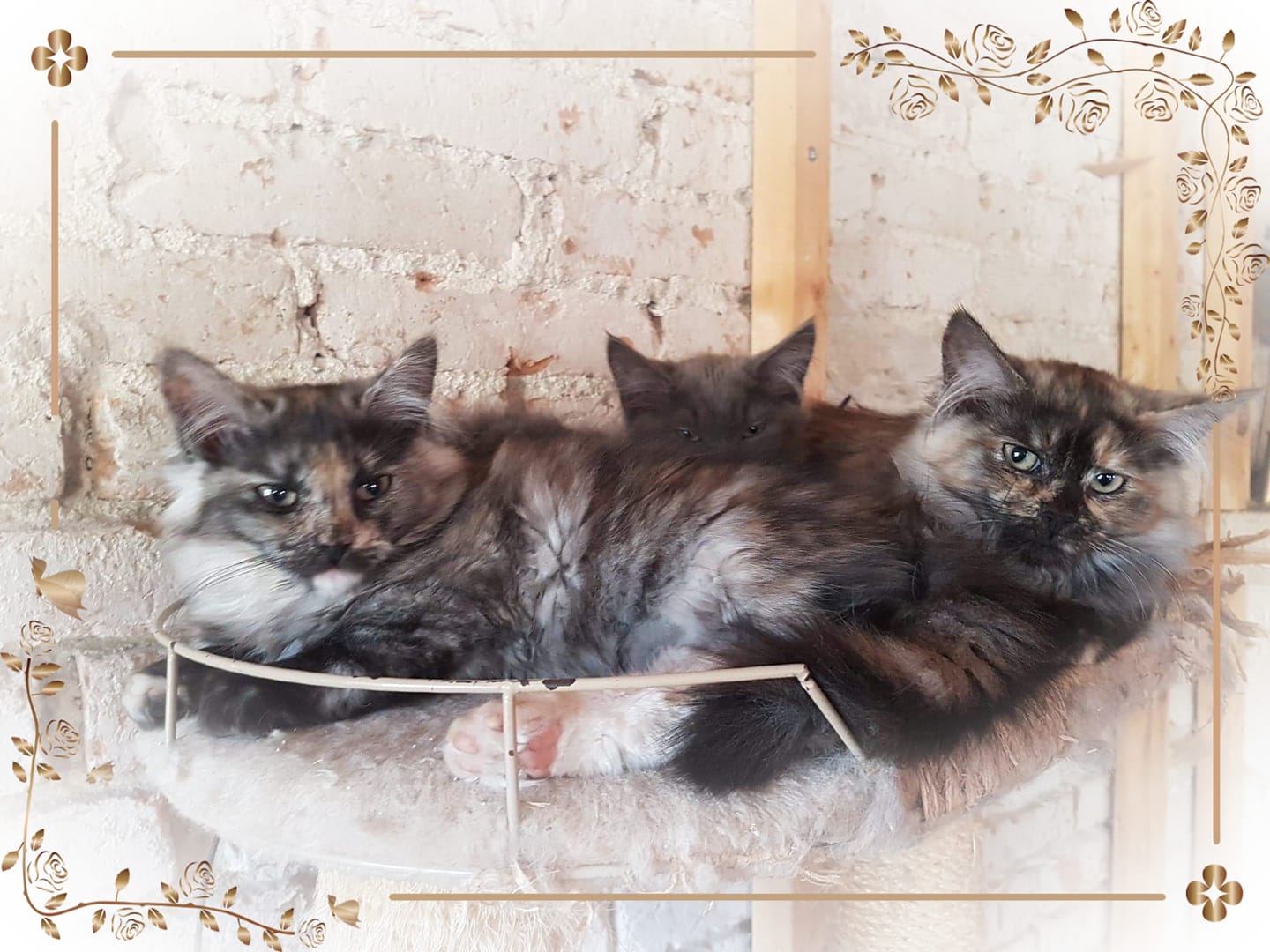 | Sire: Plymarnas Tycho Brahe (MCO d – rød) F6 Dam: Lykken’s Dream Catcher (MCO as 09 – blåsmoke med hvit) F3 Født: 26.11.2020 EMS: MCO fs 09 – svartskilpaddesmoke med hvit Totalinnavl: 4,23% Topp 5: 26,9% Kloner: 12,2% HCM DNA: N/N SMA DNA: N/N PK-def DNA: N/N Blodtype: N/N Genetisk variasjon: 38% HCM-ultralyd: normal (2024) HD-røntgen: 0-0 (PawPeds) Avkom: C-kullet ✨MyCatDNA rapport ✨Helseprofil | ![]() ![]() ✨Album ✨Avkom i avl |