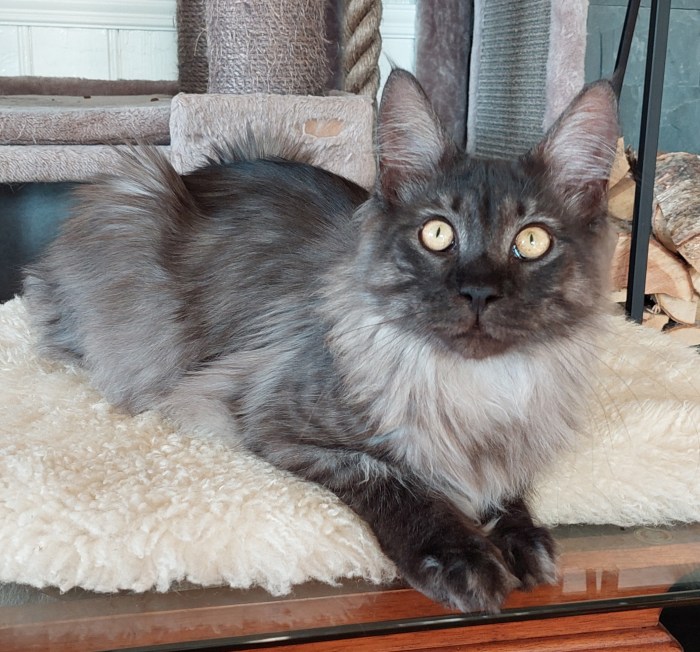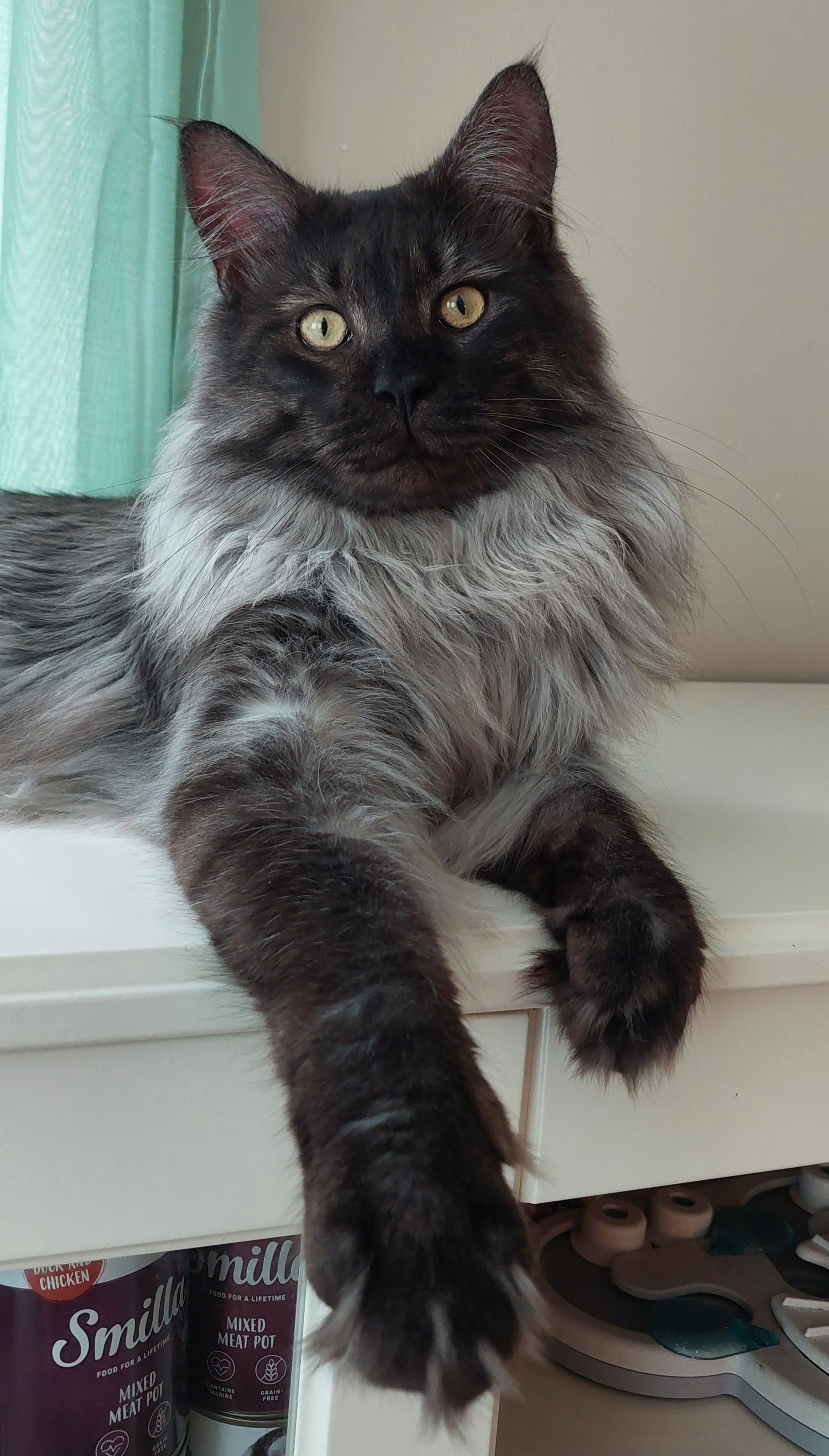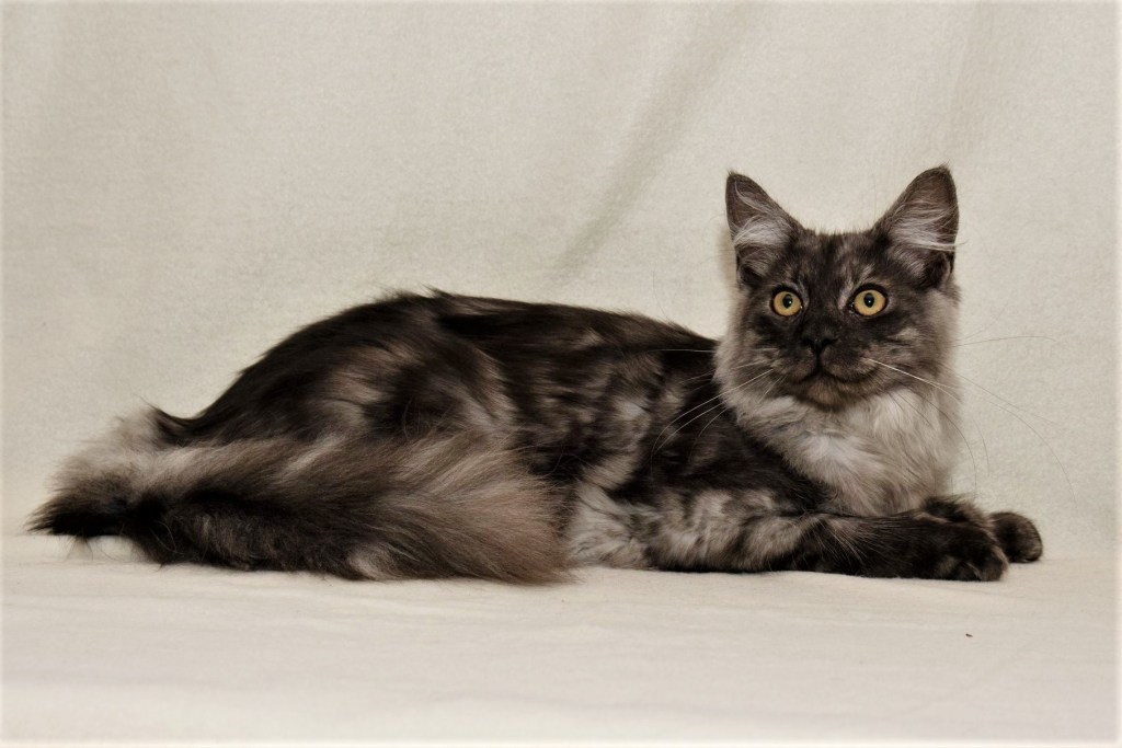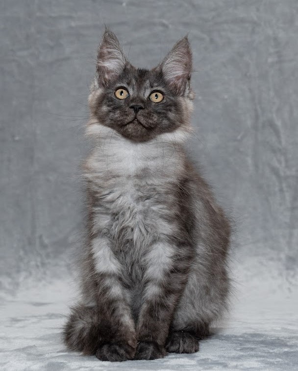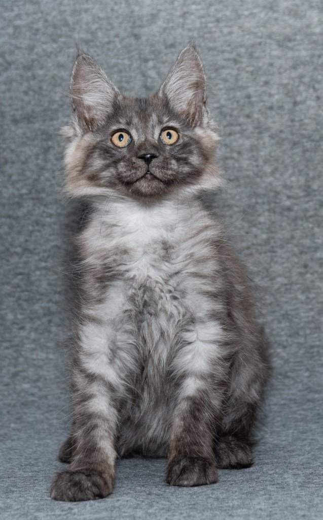 | Sire: Percè P d’Aigrefeuille P (MCO ns – black smoke) Dam: Stella Del Mattino’s Skyline (MCO fs – black tortie smoke) D.O.B: 07.12.2021 EMS: MCO ns – black smoke (outcross) COI: 5,89% Top 5: 47,4% Clones: 21,5% HCM DNA: N/N SMA: N/N PK-def: N/N Blood type: N/b Genetic diversity: 39% HD x-ray: 1-1 (PawPeds), BORDERLINE (OFA) HD x-ray pictures Offspring: E-litter ✨MyCatDNA report ✨Health profile ✨Offspring in breeding ✨Album | ![]() ![]() |