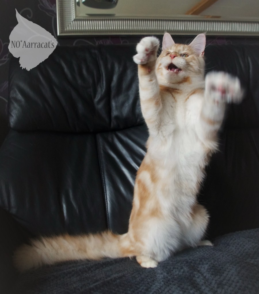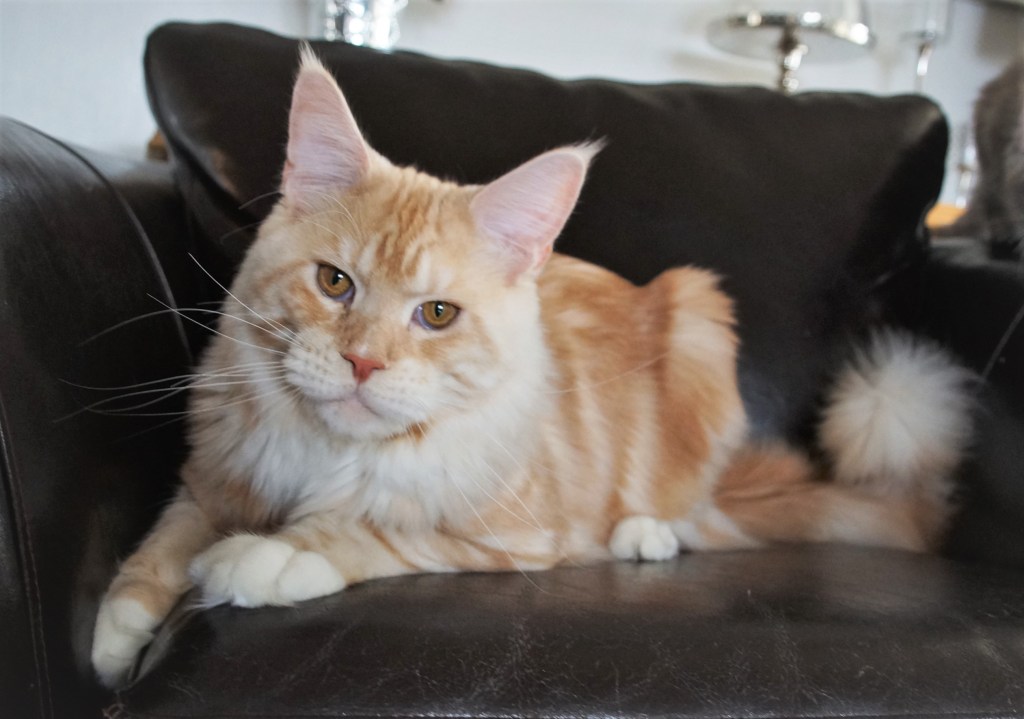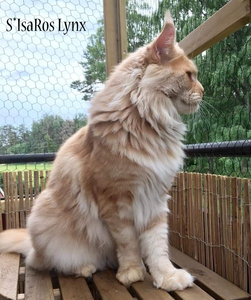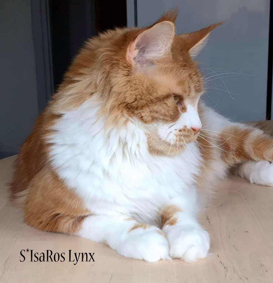 | Sire: Sätra Brunns Nathan (MCO ds 22 – red silver tabby) Dam: S*IsaRos Lynx Bianca (MCO d 03 – red bicolor) D.O.B: 11.05.2020 EMS: MCO ds 09 – red smoke with white COI: 16% Top 5: 72,5% Clones: 38,3% HCM DNA: N/N SMA: N/N PK-def: N/N Blood type: N/N HCM screening: normal (2021) HD x-ray: good – OFA, 0-0 (PawPeds) Offspring: B-litter, C-litter, D-litter ✨MyCatDNA report ✨Health profile | ![]() ![]() ✨Show profile ✨Album ✨Offspring in breeding |