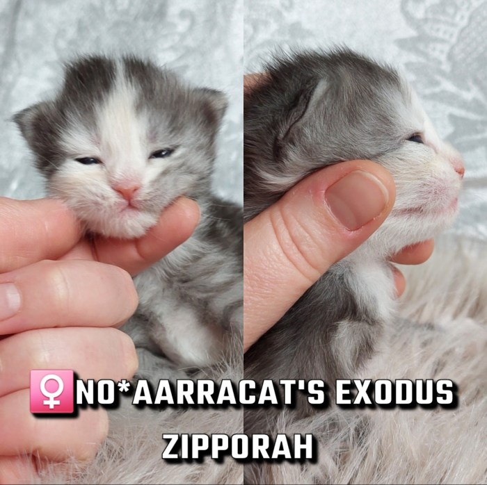 Zipporah er en skjønn frøken med mildt gemytt. Personligheten minner mye om hennes far som er en oppfinnsom type med mye sprell. Hun er ei lita kosedokke som elsker å ligge tett inntil matmor, og som helst skal ligge innunder dyna når vi skal sove. Hun skravler og krever oppmerksomhet. Dette er en skikkelig godjente ❤