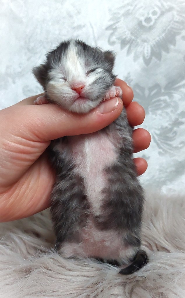 | Sire: Stella Del Mattino’s Rigoletto (MCO ns – svartsmoke) Dam: GIC NO*Aarracat’s Divine Nala (MCO ds 09 – rødsmoke med hvit) Kull: E-kullet (Exodus) Født: 06.03.2024 EMS: MCO fs 09 – svartskilpaddetabby med hvit Totalinnavl: 8,7% Topp 5: 57,5% Klones: 28% HCM DNA: N/N SMA DNA: N/N PK-def DNA: N/N Blodtype: N/b Genetisk variasjon: 37% HD-avlesning: FAIR OFA Hofterøntgenbilder Avkom: ✨MyCatDNA rapport ✨Helseprofil | ![]() ![]() ✨Ustillingprofil ✨Album ✨Avkom i avl |